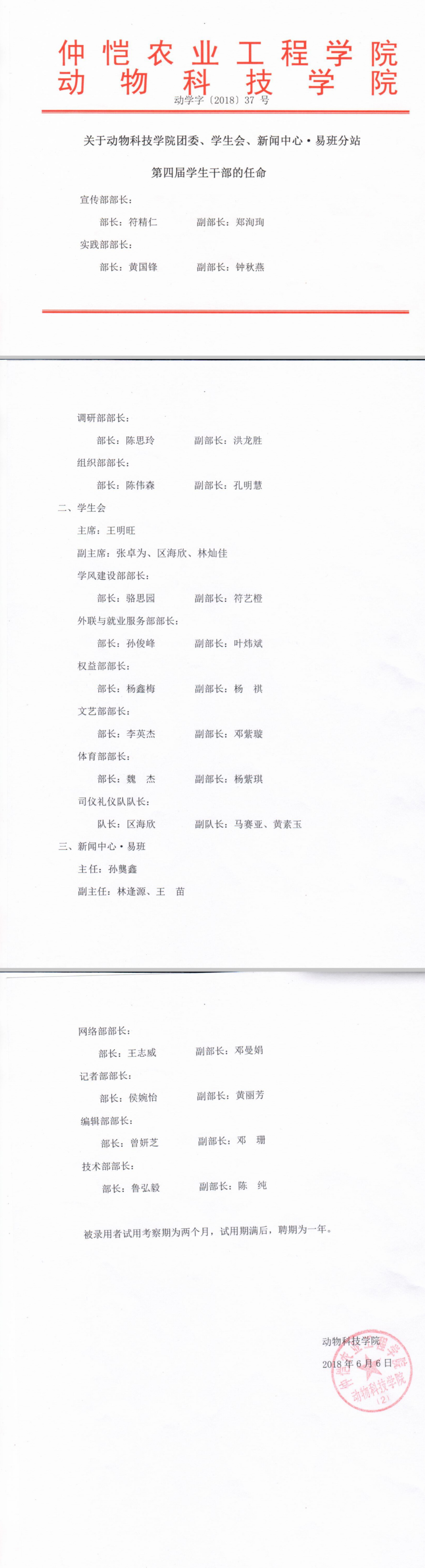 关于KY开元集团官网入口团委、学生会、新闻中心·易班分站第四届学生干部的任命的通知