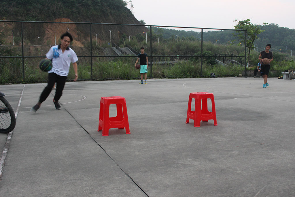 技巧赛则要求选手快速绕过场上的多个障碍到对面半场的罚球线定点投篮,然后返回到中线处用球撞瓶子,击中者总用时可减两秒,经过一个带球转身上篮后赛程结束。最终,动科151廖超帆以最少用时成为冠军。