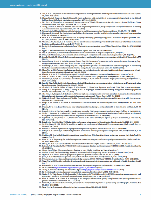 林蠡:我国牛蛙养殖历经百年发展,已成为全球最大生产国,产值超千亿元,成为我国乡村振兴的重要产业。目前牛蛙产业面临种质退化(近亲繁殖导致遗传多样性衰减)、病害频发(细菌性疾病为主)和环境压力的问题。基因组中包含了生长性状、抗病因子 、环境适应基因簇等重要的基因信息,牛蛙的全基因组的测序对于解决当前的产业问题具有重要意义。2017年加拿大学者发布的牛蛙基因组草图中存在组装缺陷,无法满足精准育种需求。因此,我们团队联合广东海兴农集团重启了染色体水平的全基因组精密测定,旨在为种质改良、疾病防控及产业升级提供科学依据。
