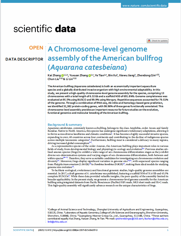 林蠡:开源共享是“后基因组时代”的科研趋势。牛蛙作为两栖动物进化研究的代表物种,其基因组数据可为脊椎动物陆生适应机制提供线索。国内外同行可基于此数据开展病原互作、抗逆基因挖掘等研究,避免重复投入。在产业端,基因信息将推动良种标准的制定、疾病快速检测技术开发,助力牛蛙养殖提质增效。
