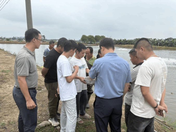 特派员团队赶赴养殖基地,针对当地养殖鳜鱼常见的病害问题,现场传授“早预防、准诊断、快处理”综合防控策略,指导养殖户科学用药、优化免疫流程,显著降低养殖风险;同时,聚焦养殖过程中的投喂与水质调控瓶颈,演示智能化投饵设备应用,详解溶解氧、氨氮等关键指标的实时监测要点,助力养殖户实现“节本、增效、生态”的现代化养殖模式。此外,针对养殖户检测难痛点,特派员团队提出构建镇域快速检测平台规划,承诺链接仲恺及珠江所实验室资源,为苗种质量、病害预警及水质安全提供“家门口”的专业保障。最后,团队结合消费升级与政策导向,深入分析鳜鱼产业未来趋势,强调绿色认证、品质提升与电商融合的重要性,引导产业向高附加值转型。渔民们踊跃提问,塘头变身了“流动小课堂”。
