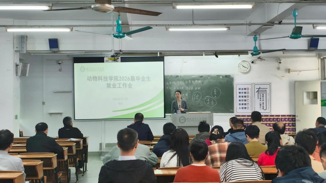 林蠡聚焦“落地见效”明确工作举措。他表示,当前正值毕业生就业关键期,全体教工要统一思想、凝聚共识,以高度的责任感全身心投入就业推进工作。他表示,学院要立足动物科技领域特色,精准对接行业需求与毕业生意向,积极组织专场招聘会,重点邀请优质企业、校友企业进校,搭建精准就业对接平台;同时健全就业工作联动机制,细化各岗位人员职责,将全员促就业的要求转化为具体行动,推动学院就业工作提质增效。