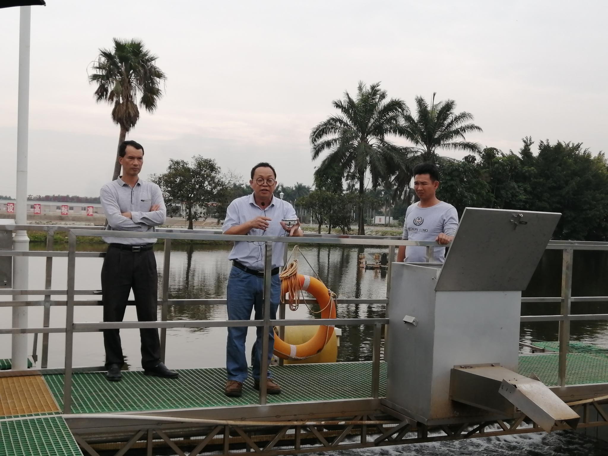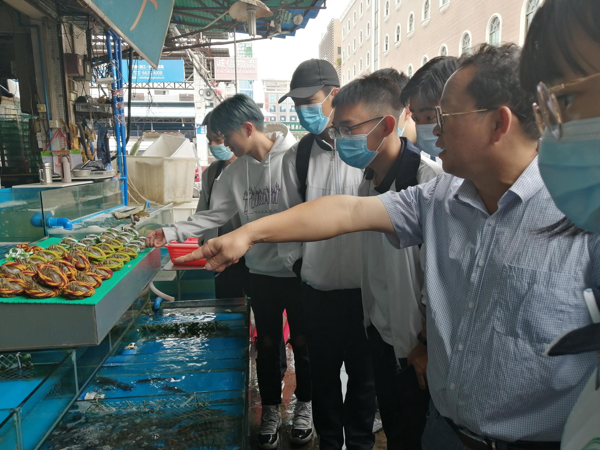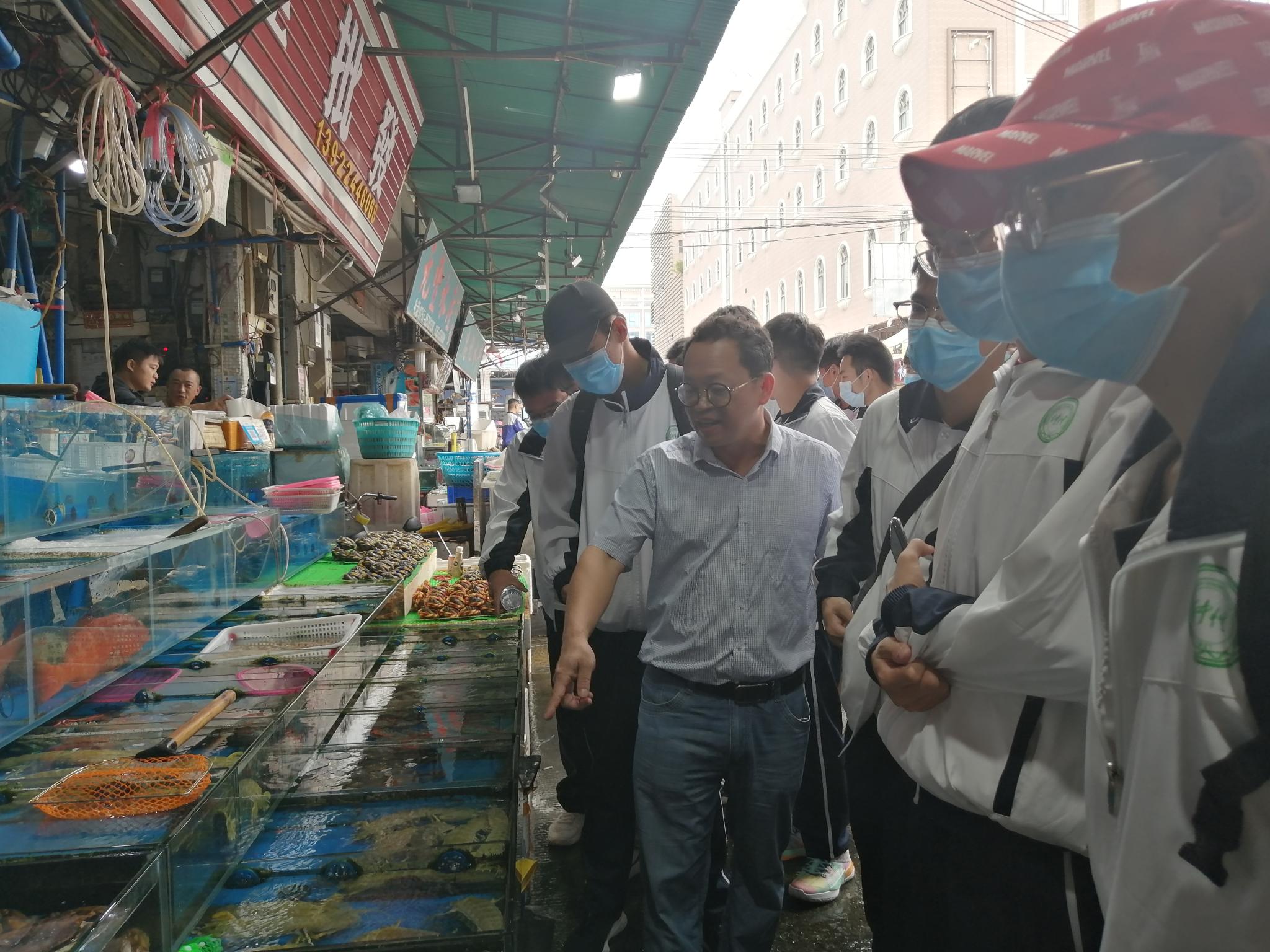 在随后的交易市场实地参观和走访中,院长林蠡和两位专业老师给同学们进行现场教学,现场讲解水产养殖方面的有关知识。