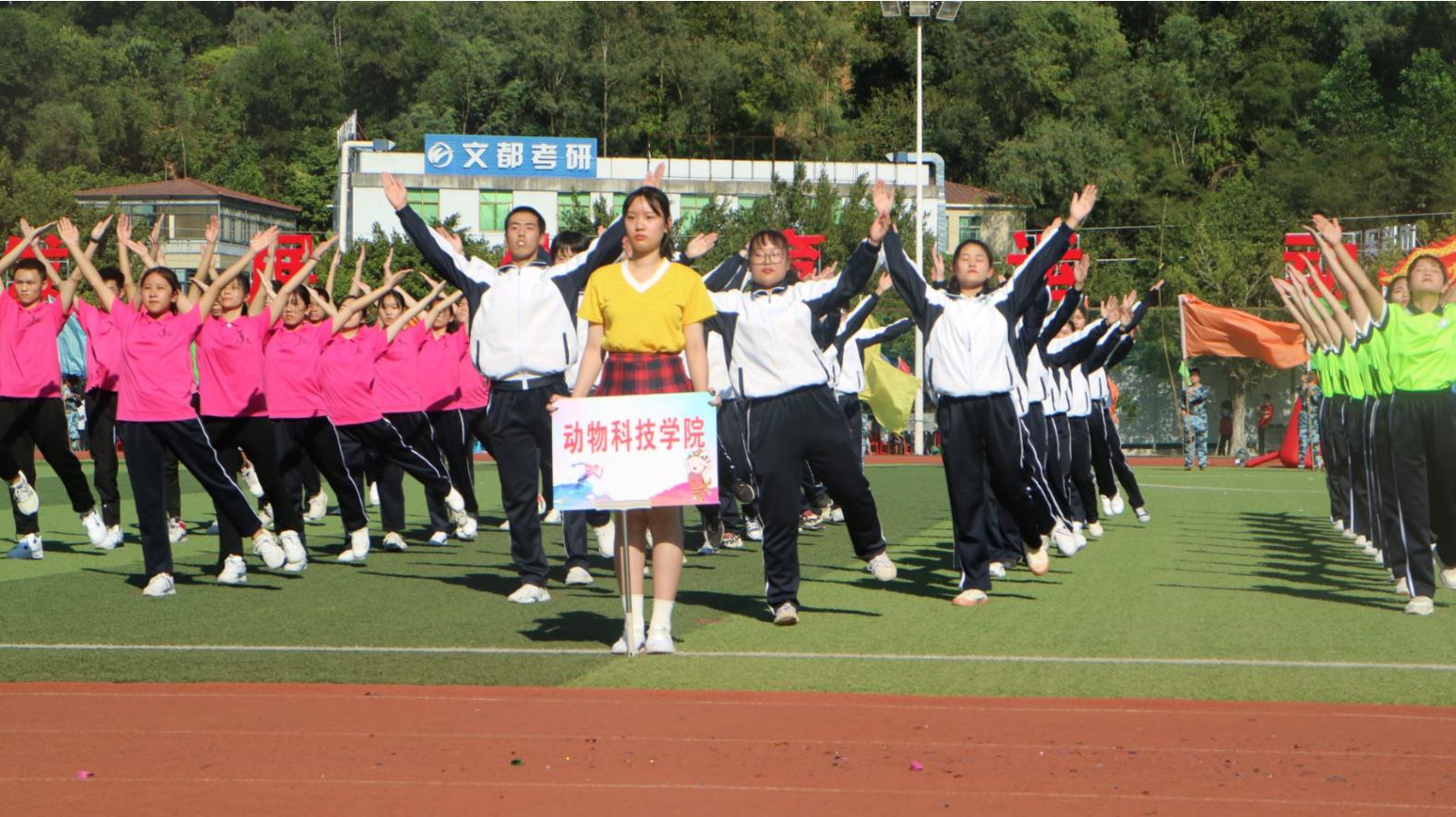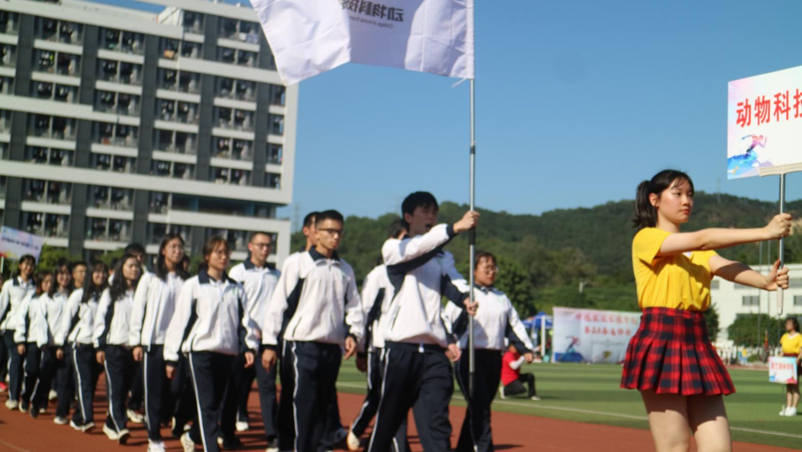 运动会开幕式的入场式中,KY官网方阵统一身着校服手持国旗,士气高昂地走过主席团,“动科出征、万物丛生”的口号响彻云端,充分展现出KY官网的专业特色和师生力争上游的信念。入场完毕后,校党委副书记李海燕对此次运动会致辞,希望同学们能够赛出成绩、赛出风采,并预祝校运会顺利进行。