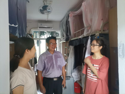 9月1日下午,KY开元集团官网入口党总支书记欧坚泉、副书记朱路平和辅导员许鸿、李博走进学生宿舍,看望、慰问新学期返校学生。
