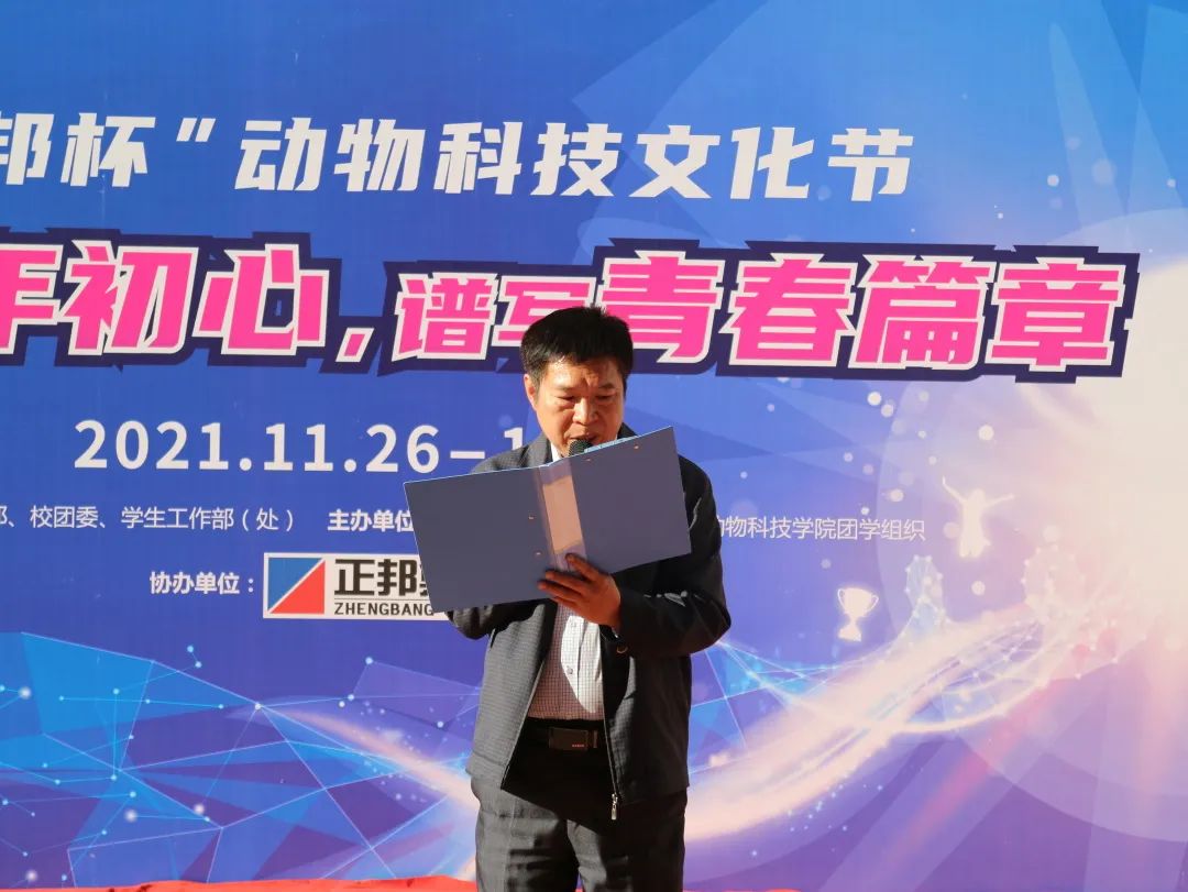 为了贯彻落实“三全育人”工作会议精神,培养学生的创新精神和实践能力,提高学生科学素养和综合素质,KY开元集团官网入口举办首届“正邦杯”动物科技文化节。11月28日,举行活动闭幕式,KY开元集团官网入口党委书记欧坚泉、学生工作处副处长沈洁、校基建处副处长徐骏、外国语学院党委副书记柴明勤、KY开元集团官网入口副院长黄运茂、KY开元集团官网入口党委副书记朱路平、KY开元集团官网入口系主任、辅导员老师以及100多名学生代表出席了本次活动。闭幕式由朱路平主持。