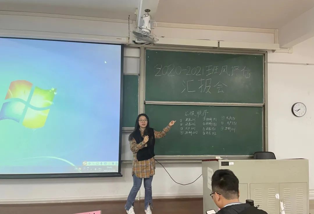 最后由辅导员关敏进行总结与发言。关老师对表现优秀的班级进行了表扬,同时也指出了汇报存在的问题。并且对各班代表提出建议,今后应做到按照各项进行更加精准的汇报。