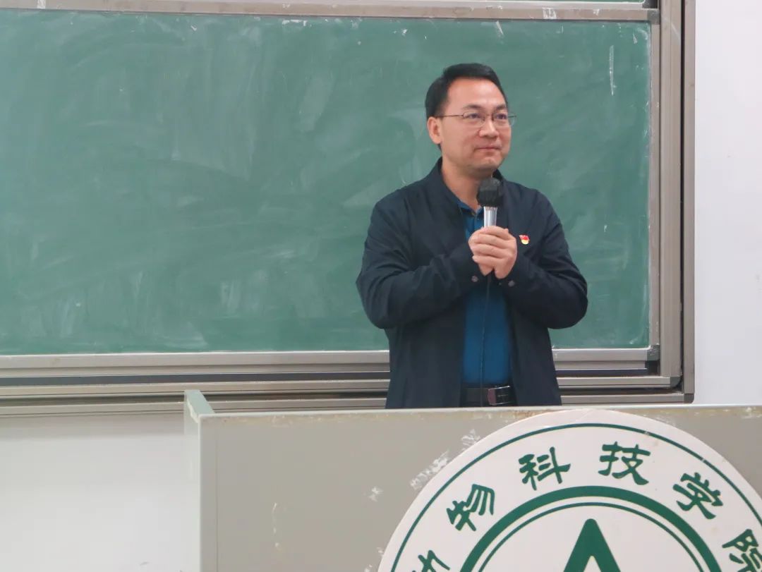 学院党委副书记朱路平主持党课,辅导员许鸿、赵江、关敏、全体学生党员、青马班学员及团学组织代表参加党课学习。