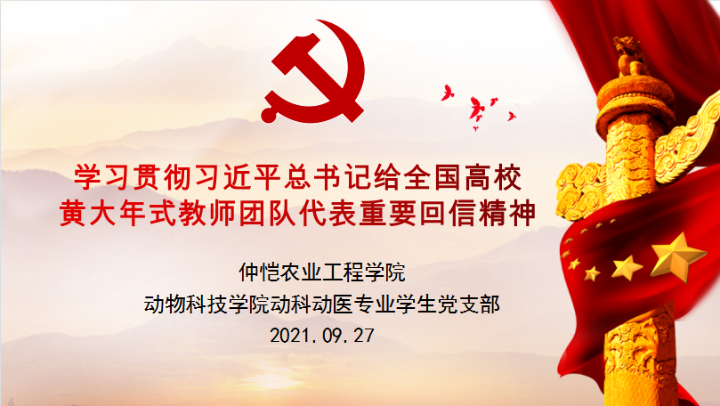 为切实推进党员学习教育常态化制度化,不断增强党性学习教育和政治文化素养,9月27日,KY开元集团官网入口动科动医专业学生党支部书记许鸿于杨楼203开展“热爱专业、热爱国家,做学生带头人”主题党课,全体动科动医专业学生党支部成员参加本次党课。