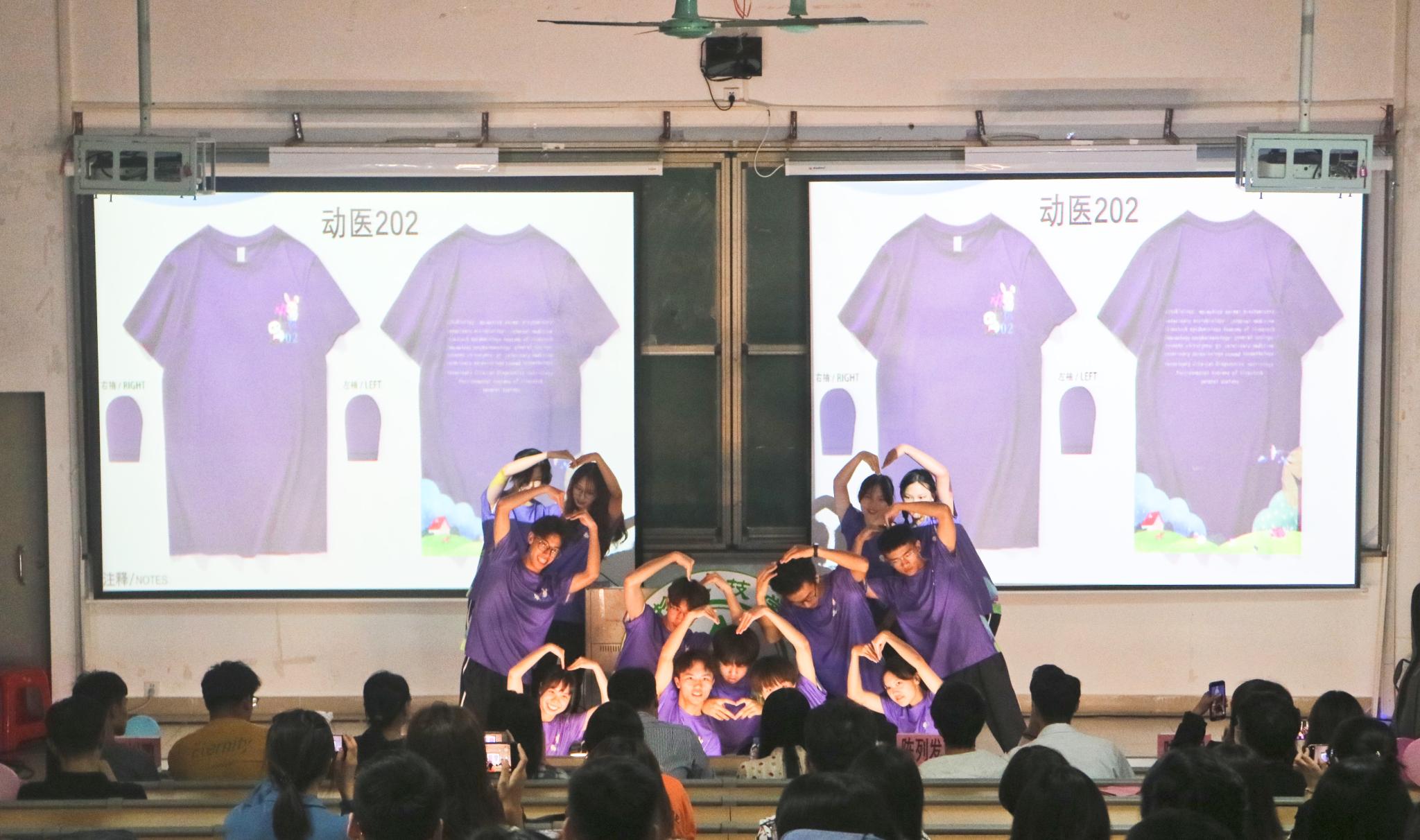 首先出场的是动医202班,他们带来的节目是自创舞蹈作品《爱的恰恰》和合唱歌曲《你曾是少年》,突出了爱护动物,不失热诚而温暖的心并成为一名优秀动物医学专业从业者的主题。