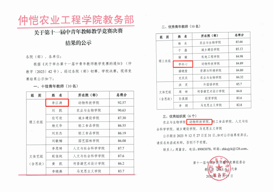 12月14日,KY开元集团官网入口第十一届中青年教师教学竞赛决赛在白云校区学术报告厅顺利举行,经过激烈角逐,KY官网教师李江涛斩获十佳青年教师,李冰心斩获优秀青年教师,KY开元集团官网入口荣获优秀组织奖。