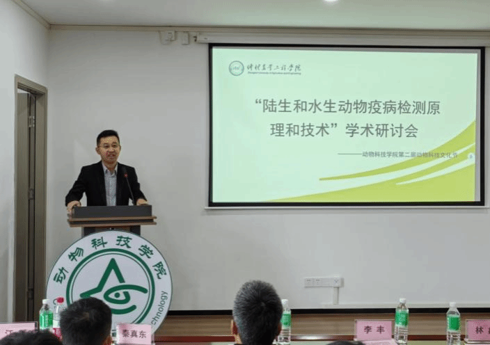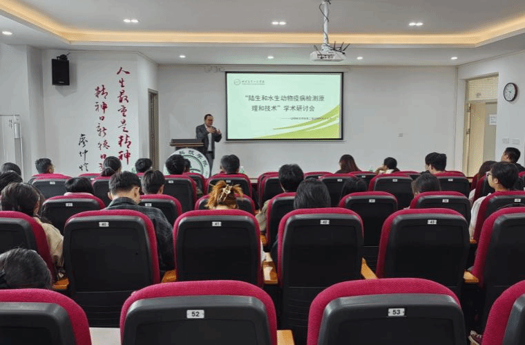 12月3日,学院在白云校区生命科学大楼B座604举办“陆生和水生动物疫病检测原理和技术”学术研讨会,学院特聘副教授秦真东、刘春、江飚以及广州爱尚宠生物科技有限公司市场部经理郭慧妍、广州智汇生物科技有限公司研发经理张玉明分别作学术报告,会议由学院副院长刘文俊主持。