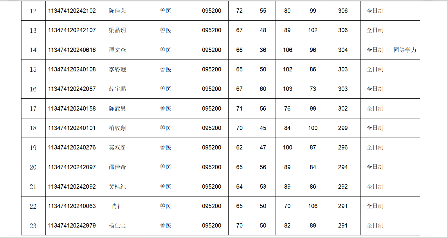 3)招生专业按全日制与非全日制两类分开排序,考生综合成绩(保留至小数点后两位)从高到低排序确定拟录取顺序。如综合成绩排名最后的两名考生成绩相同,则以初试成绩总分为准从高到低录取;若考生初试成绩也相同,则以初试专业课总分为准从高到低录取。
